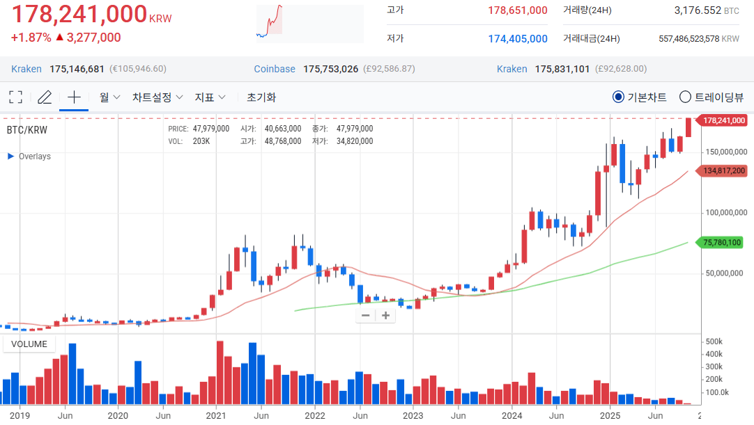 비트코인이 지난 일주일 간 14% 이상 오르며 12만5000달러(업비트 원화 기준 약 1억7800만원)를 돌파해 과거 최고가였던 12만4470달러를 돌파했다. 역대 10월 초 상승률 중 역대 가장 강한 흐름 중 하나로 평가된다.