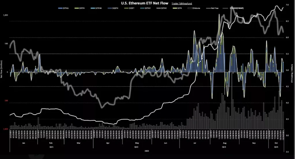 10월 16일 트레이더T에 따르면, 현지 시간으로 15일 미국 이더리움 현물 ETF 시장에 총 1억6920만 달러(약 2,400억원)가 순유입으로 집계됐다.