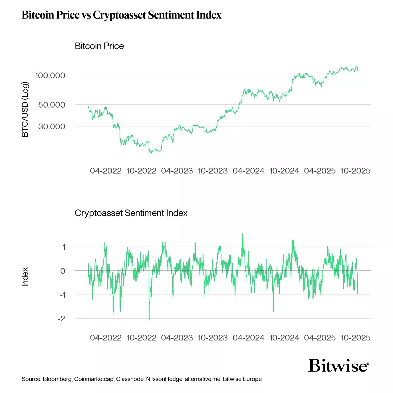 비트와이즈 내부 지표 역시 심리 저점을 나타내고 있다. 드라고슈는 “자체 크립토자산 심리지수가 2024년 여름 이후 가장 낮은 수준으로 떨어졌다”며 “역사적으로 이런 극단적 구간은 4분기 계절적 강세 전 진입 기회를 제공했다”고 덧붙였다.