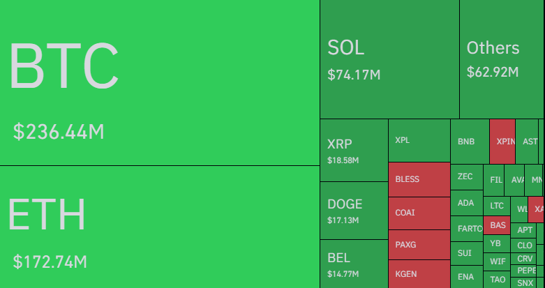 코인글래스 데이터에 따르면, 지난 24시간 동안 총 20만9,287명의 트레이더가 청산됐으며, 전체 청산 규모는 7억3,692만달러(약 1조320억원)를 기록했다.