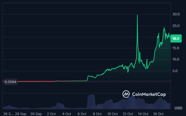 한편 COAI 토큰은 지난 한달간 3700% 이상 급등하며, 19달러선에서 거래되고 있다.
