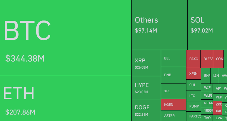 이 중 롱 포지션 청산은 7억9290만달러(약 1조1200억원), 숏 포지션 청산은 2억2091만달러(약 3100억원)였다.