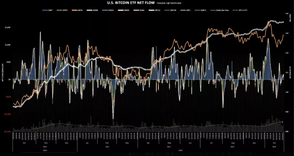10/28 미국 비트코인 현물 ETF: 2,089억원 순유입