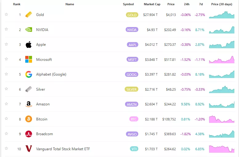 현재 비트코인 시가총액은 약 2조2000억달러(약 3370조원)로, 메타와 테슬라를 넘어 금융자산 중 8위 규모다.