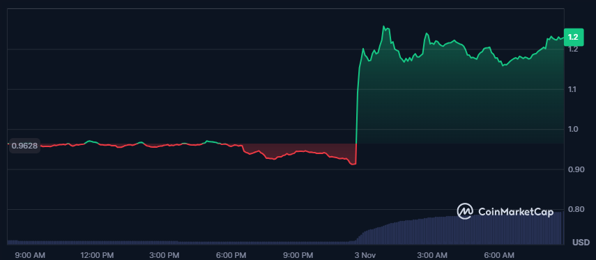 자오 창펑의 매수 사실이 알려지자 ASTER 시세는 단기간 30% 넘게 오르며 1.19달러(약 1700원)를 기록했다. 3일 기준 현재 1.22달러선에서 거래되고 있다.