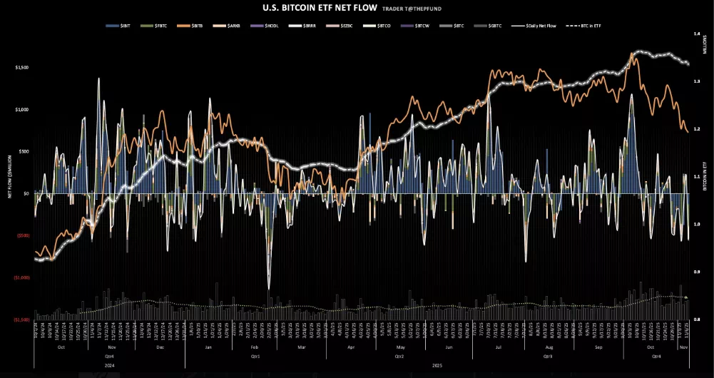 11월 8일 트레이더T에 따르면, 현지 시간으로 7일 미국 비트코인 현물 ETF 시장에서 총 5억5419만 달러(약 8045억원)가 순유출로 집계됐다.