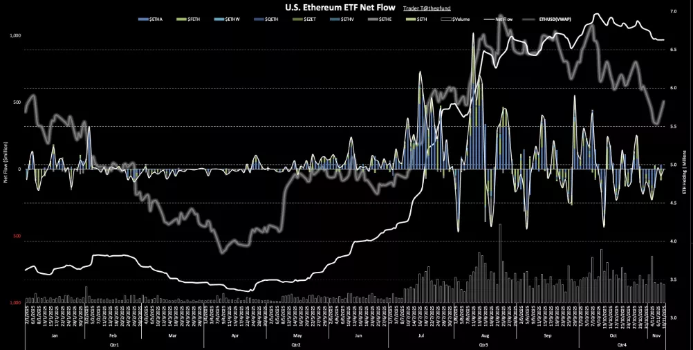 11/11 미국 이더리움 현물 ETF: 변동 없음