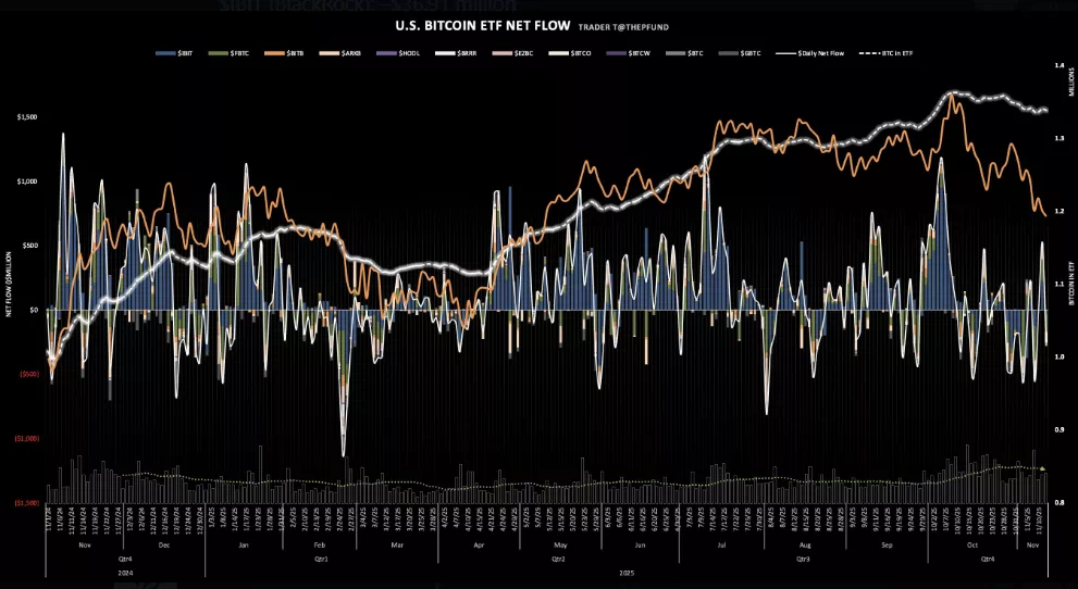 11월 13일 트레이더T에 따르면, 미국 비트코인 현물 ETF 시장에서 총 2억7800만달러(약 4087억원) 순유출로 집계됐다.