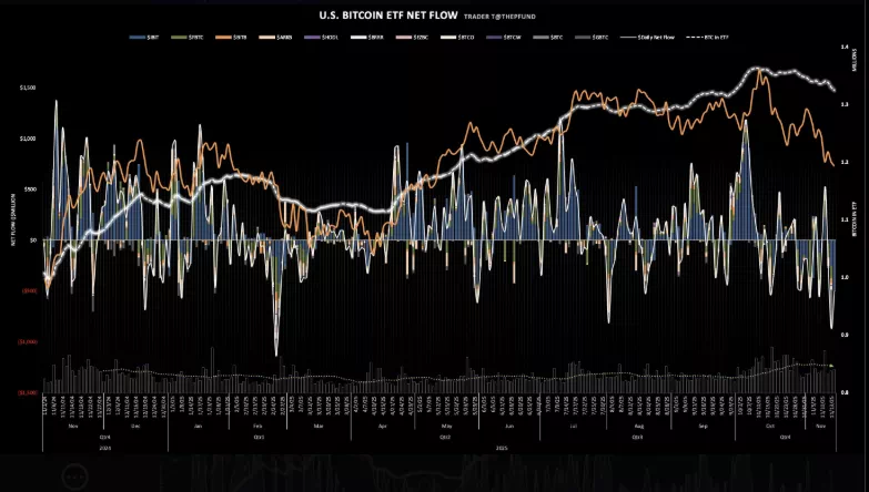 11월 15일 트레이더T에 따르면, 현지시간 14일 미국 비트코인 현물 ETF 시장에 총 5억0273만달러(약 7390억원)가 순유출로 집계됐다.