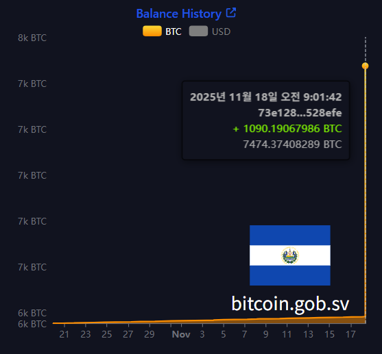 이에 따라 엘살바도르의 비트코인 보유량은 이번 매입분을 포함해 7474.37개로 늘었다. 전체 보유 자산 가치는 약 6억8600만달러(약 1조80억원) 수준이다.