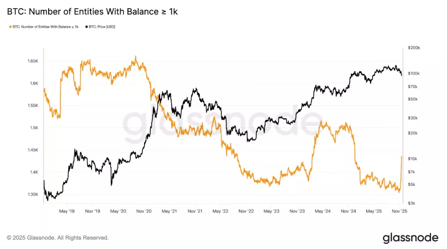 1,000BTC 이상 보유 지갑은 1,436개로 증가