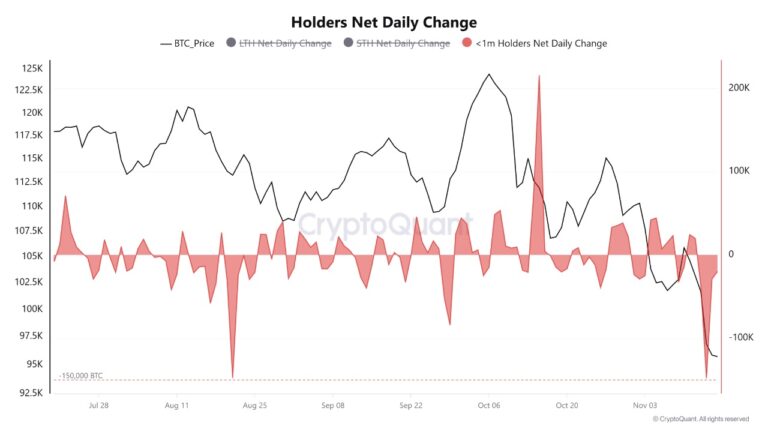 크립토퀀트 등록 애널리스트 크레이지블록에 따르면, 지난 16일 100만 BTC 미만 보유 주소에서 14만8241BTC의 대규모 손절 매도가 발생했다. 평균 매입 단가(10만2000~10만7000달러)보다 낮은 가격에서 매매가 이뤄져 신규 투자자들의 패닉 장세가 나타났다고 평가했다.