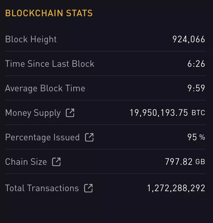 비트코인(BTC) 채굴량이 전체 발행 상한 2,100만개 중 95%를 넘어섰다.