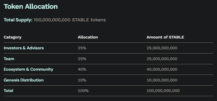 가상자산 프로젝트 스테이블이 3일 공식 채널을 통해 자체 가상자산 ‘STABLE’ 토큰 경제모델을 공개했다.