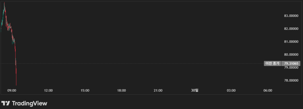 온스당 은(실버) 현물값은 29일 장 초반 80달러를 처음 넘어선 뒤 83달러 선까지 상승 후 75달러선으로 급락했다.