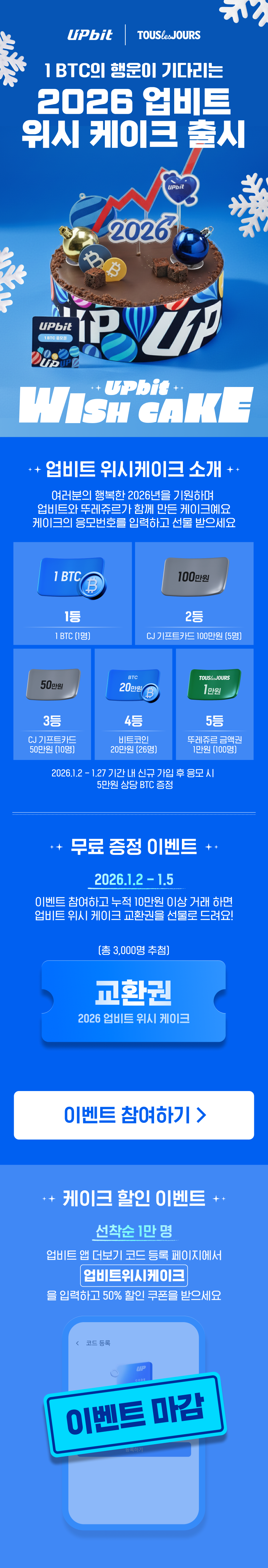 이벤트 둘 ! 2026 업비트 위시 케이크 50% 할인 이벤트