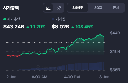 코인마켓캡 기준 밈코인 전체 시가총액은 432억4000만달러(약 62조원)로 집계됐다. 같은 기간 시가총액은 10.29% 증가했으며, 거래량은 80억2000만달러(약 11조5500억원)로, 24시간 동안 108.45% 늘었다.