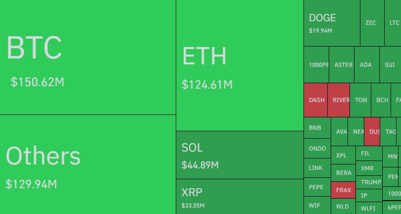 코인글래스 데이터에 따르면 지난 24시간 동안 23만8544명의 거래자가 강제청산됐으며, 포지션 방향별로는 롱 포지션이 6억155만달러(약 8843억원), 숏 포지션이 7996만달러(약 1176억원)를 기록했다.