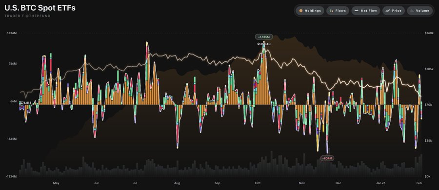 2월 4일 트레이더T에 따르면, 현지 시간으로 3일 미국 비트코인 현물 ETF 시장에 총 2억6993만 달러(약 3887억원)가 순유출로 집계됐다.