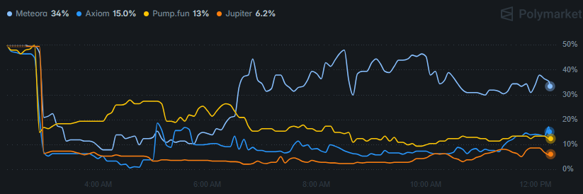 현재 솔라나 기반 프로토콜 메테오라가 34%로 가장 높은 응답을 기록하고 있으며, 한때 48%까지 올랐다. 다른 후보들은 10% 안팎 수준이다. 일부 시장 참가자들은 펭귄 이미지가 솔라나 기반 밈코인 발행 플랫폼 펌프펀을 연상 시킨다며 해당 플랫폼을 거론했다.