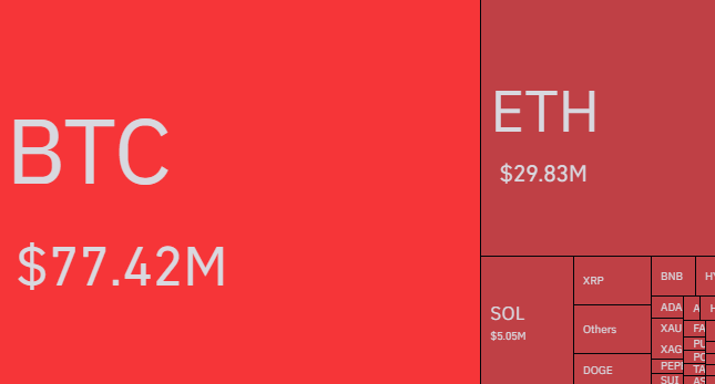 지난 1시간 기준으로는 1억2258만달러(약 1777억원) 규모의 강제 청산이 발생했으며, 포지션별로는 롱 포지션이 157만달러(약 23억원), 숏 포지션이 1억2102만달러(약 1755억원)로 숏 포지션에 집중됐다.