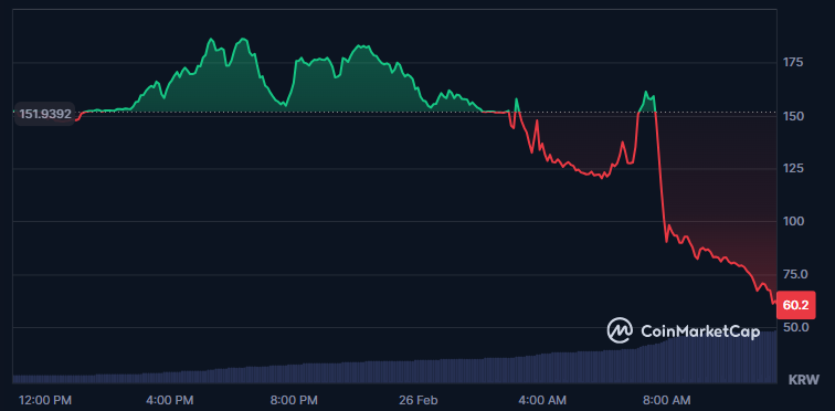 에이아이링컴플렉스(ARC) 토큰 시세가 전날 밤부터 이날 오전 사이 급락하며 시가총액이 1억3100만달러(약 1899억원)에서 5300만달러(약 811억원)로 축소됐다. 24시간 기준 하락률은 49%로, 사실상 ‘절반’ 수준이다.