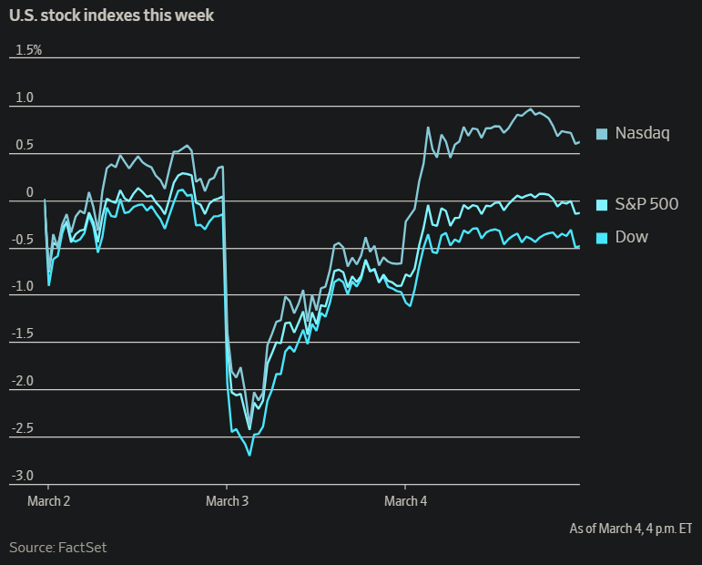 미국 뉴욕증시가 4일(현지시간) 중동 전쟁에 대한 우려를 일부 덜어내며 일제히 상승했다고 월스트리트저널이 5일 전했다.