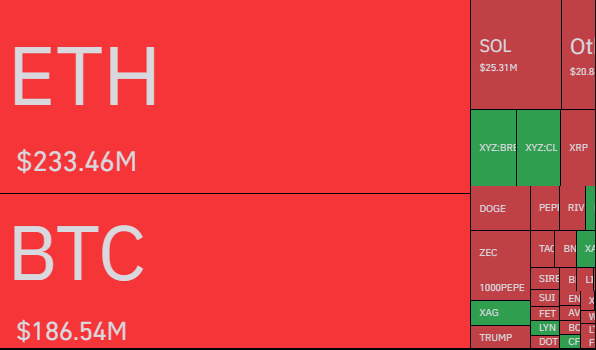 코인글래스 데이터에 따르면 지난 24시간 가상자산 파생상품 시장에서 약 5억4449만달러(약 8167억원) 규모 강제청산이 발생했다. 청산 대상 트레이더는 12만3760명으로 나타났다.