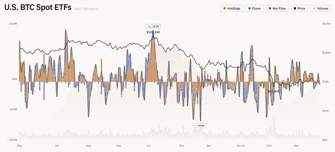 3월 25일 트레이더T에 따르면, 현지 시간으로 24일 미국 비트코인 현물 ETF 시장에 총 6671만 달러(약 1001억원)가 순유출로 집계됐다.