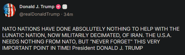 도널드 트럼프 미국 대통령이 3월 26일(현지시간) 소셜미디어에 올린 글에서 이란 협상단을 강하게 비판했다.