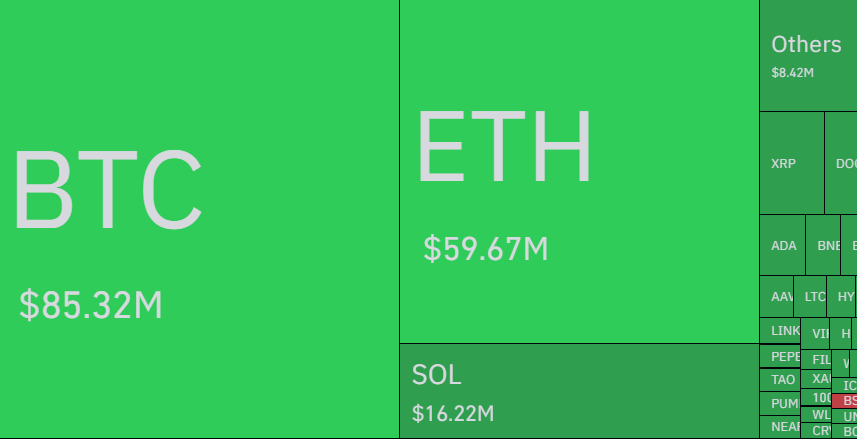 지난 24시간 기준으로 보면 동안 총 2억7743만달러(약 4161억원) 규모 청산이 발생했으며 청산 인원은 8만6379명이다. 포지션별로 보면 롱 포지션이 2억3382만달러(약 3507억원), 숏 포지션이 4361만달러(약 654억원)다.