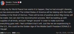 트럼프 대통령은 이란과 관세 및 경제 제재 완화를 두고 협의를 진행 중이며, 미국이 제시한 15개 협상 조항 가운데 상당수는 이미 합의됐다고 설명했다.