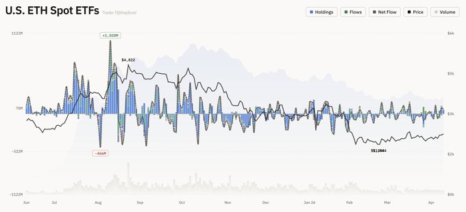 - 피델리티 FETH: 56만 달러(약 8억원) 순유출