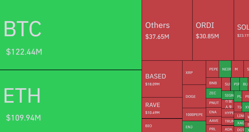 단일 기준 최대 청산은 바이낸스 BTC/USDC에서 발생했으며 규모는 971만달러(약 143억원)다.