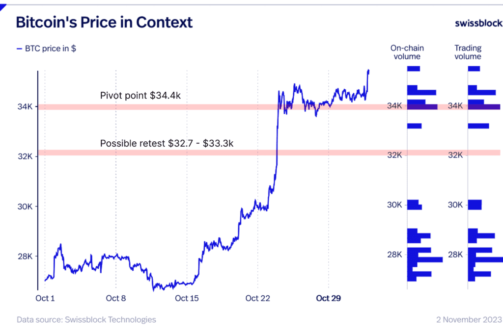 또한 “단기적으로는 3만3,700달러(약 4,517만8천 원)가 지지선, 3만4,400달러(약 4,609만6천 원)가 피벗 포인트로 작용할 것”이라며, “중기적으로는 3만2,700달러에서 3만3,300달러(약 4,459만2천 원) 구간을 다시 테스트할 수 있다”고 전망했다. 이들은 “변동성이 클 경우 해당 구간보다 낮은 수준으로 조정될 가능성도 배제할 수 없다”고 덧붙였다.