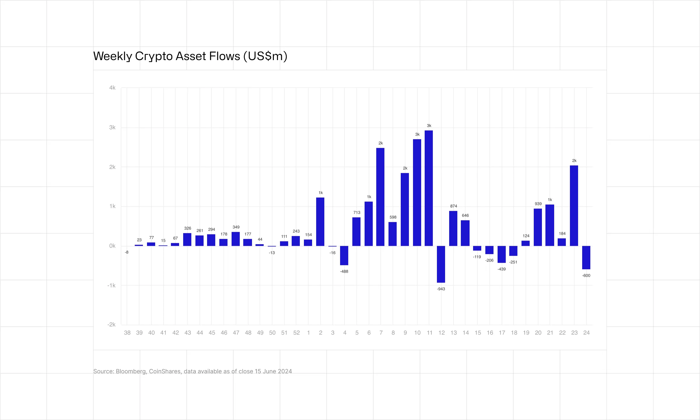 코인셰어스(CoinShares)의 주간 보고서에 따르면, 지난주 디지털 자산 투자 상품에서 총 6억 달러(약 8,100억 원)가 유출됐다.