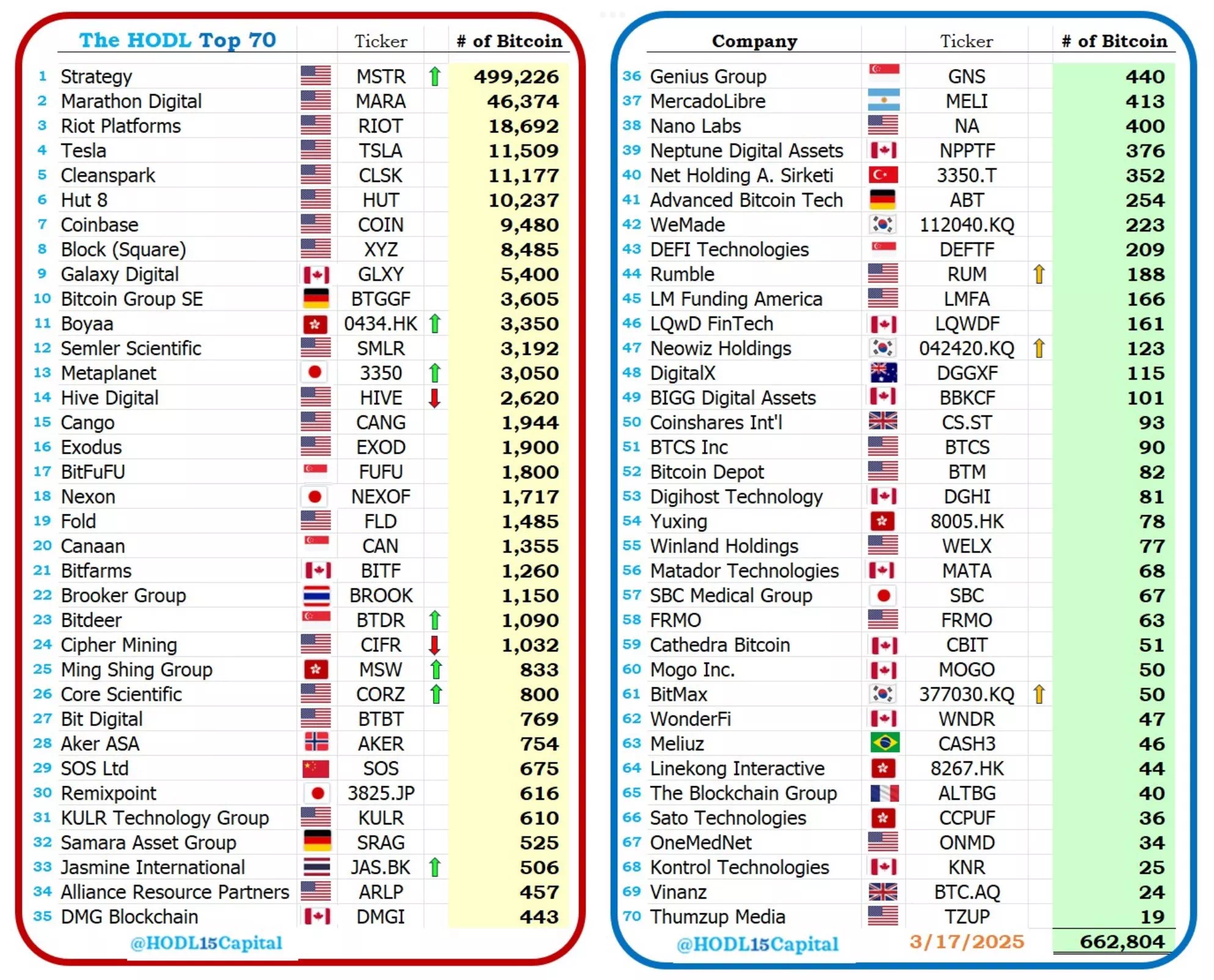데이터 제공자 호들15캐피탈이 공개한 자료에 따르면, 테슬라는 세계에서 네 번째로 많은 비트코인을 보유한 기업이다. 테슬라보다 더 많은 비트코인을 보유한 기업은 비트코인 중심의 3개 기업뿐이다.