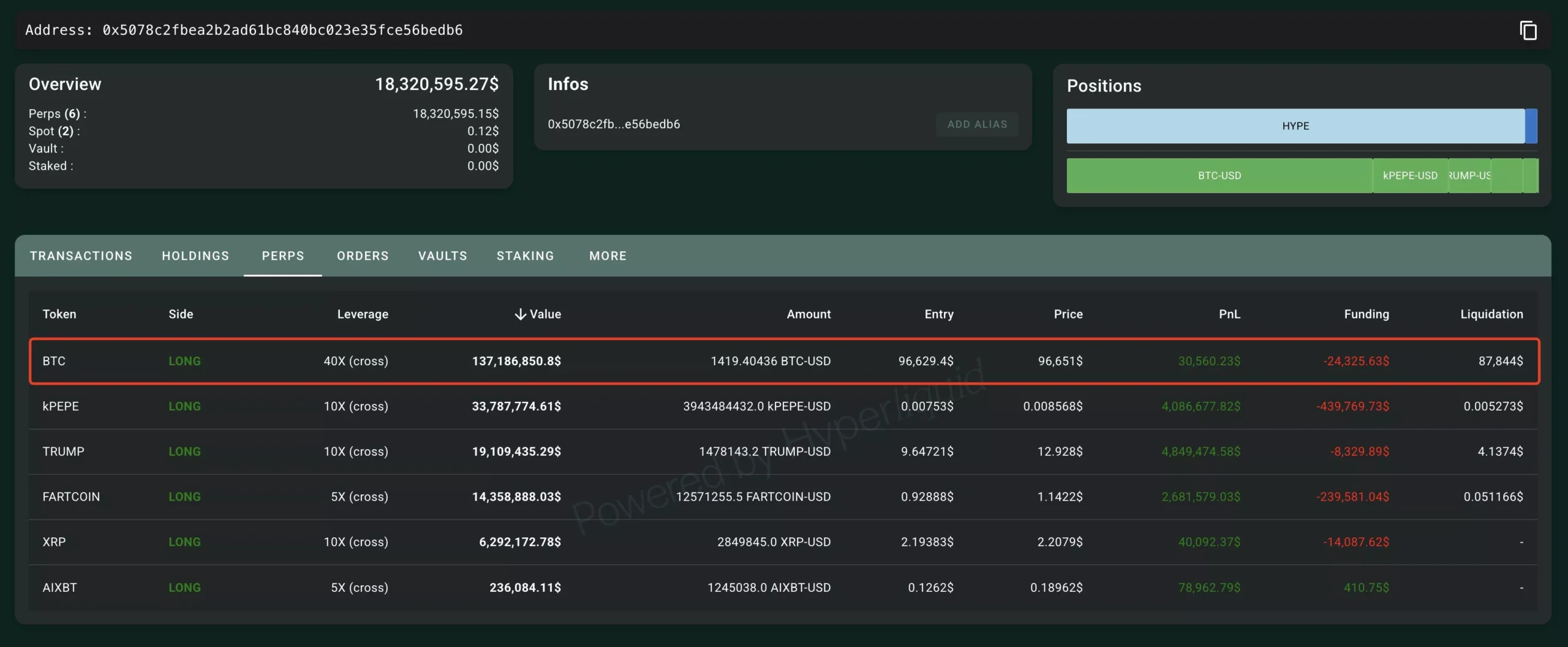특정 고래, DEX 하이퍼리퀴드서 1419 BTC 고레버리지 롱 포지션 베팅