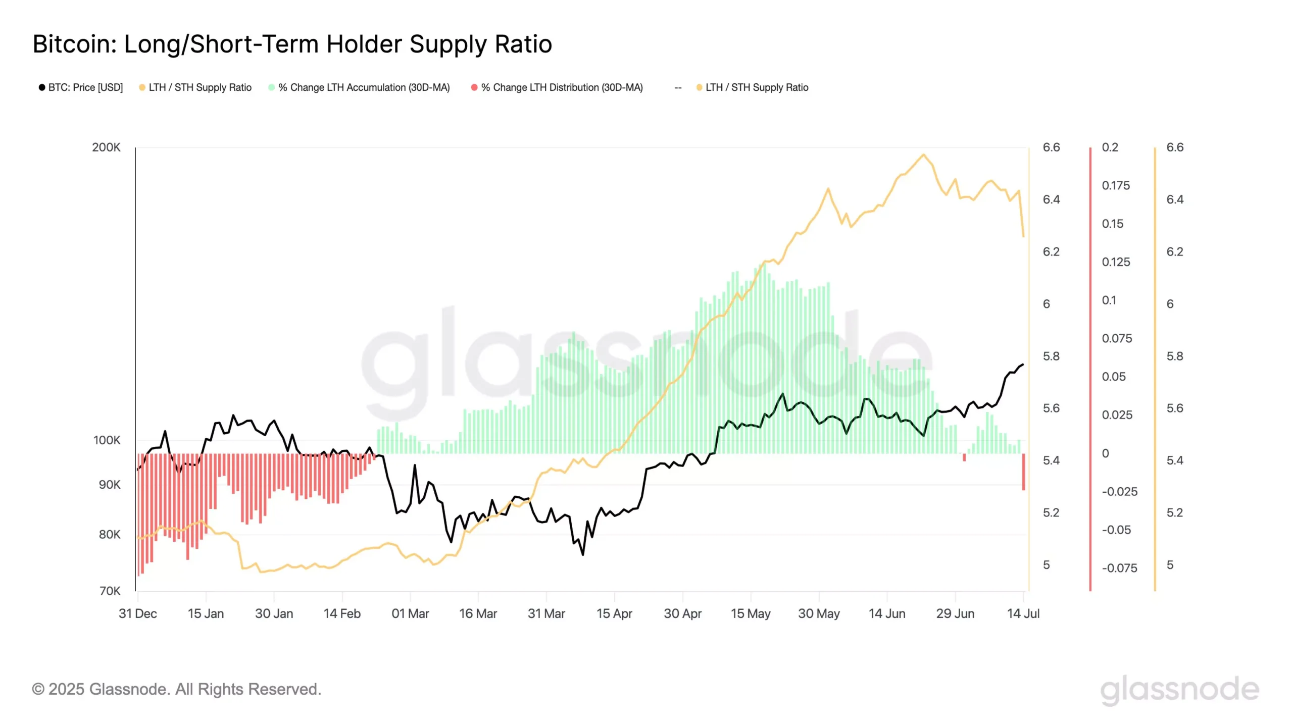 글래스노드는 15일 “BTC 단기·장기 보유자 공급 비율이 급락하고, 30일 기준 공급 변화율이 축적에서 분배로 전환됐다”며 “이러한 변화는 수익 실현 초기 신호일 수 있다”고 주장했다.